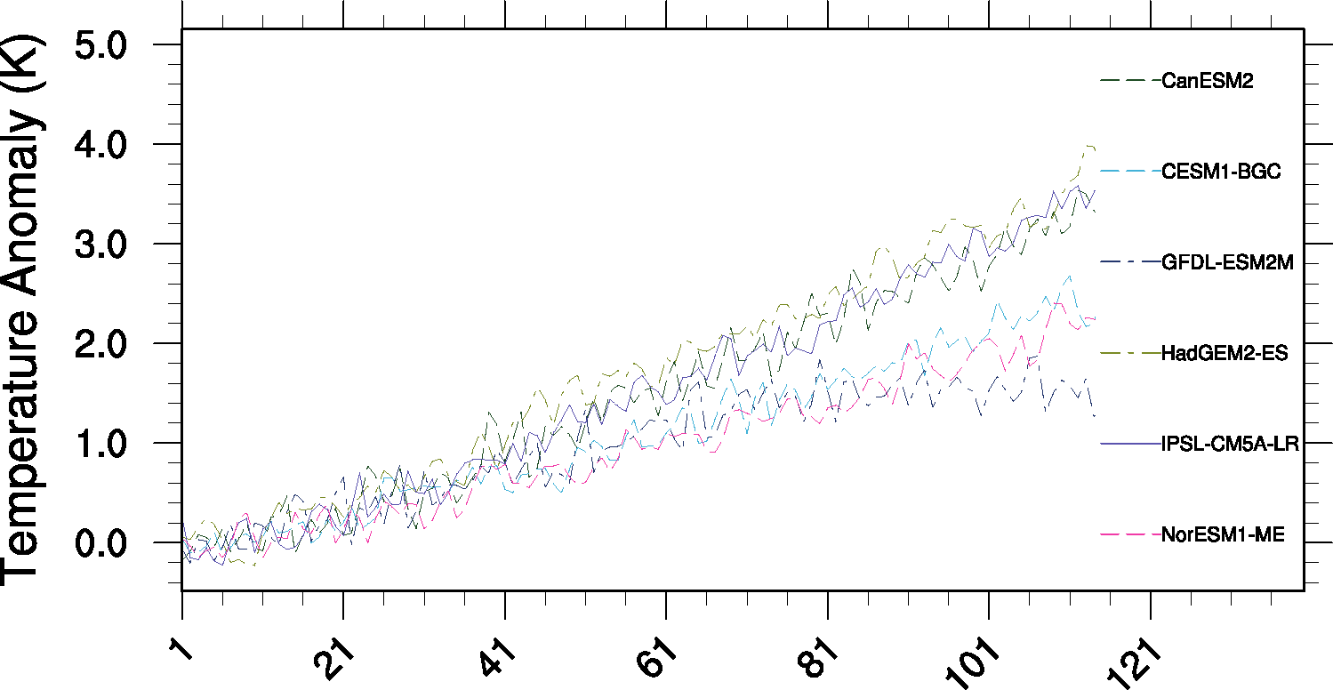 carbon_tsline.ncl: time line plots of annual means for spatial averages