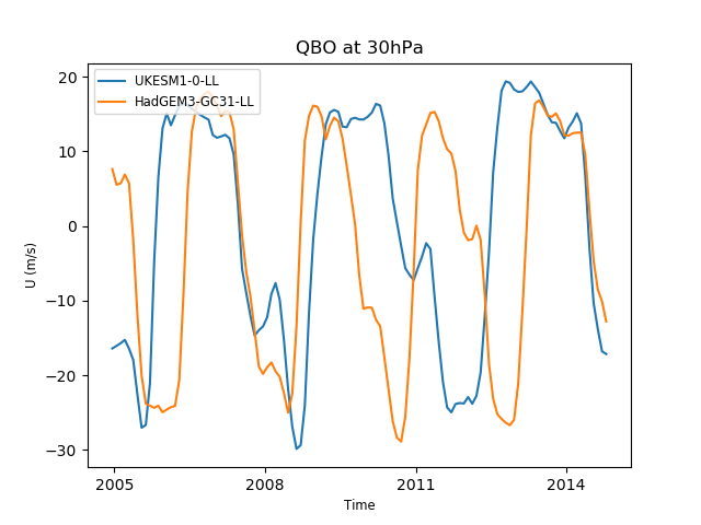 Fig. 202 QBO at 30hPa comparison between UKESM1-0-LL and HadGEM3-GC31-LL.#