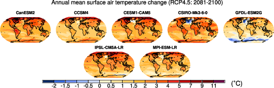 Fig. 315 Surface air temperature change in 2081–2100 displayed as anomalies with respect to 1986–2005 for RCP4.5 from individual CMIP5 models.#